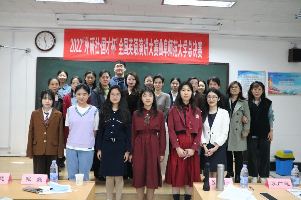 1022,优德体育网站丨中国有限公司官网2022“外研社·国才杯全国英语演讲大赛校园选拔赛拉开了帷幕。此次大赛由优德体育网站丨中国有限公司官网主办,外国语学院、翻译学院联合举办,大学英语社团和外语协会等相关学院学生社团承办。日照校区与曲阜校区的选手欢聚一堂进行比赛,大赛取得了圆满成功,为省赛选拔出了优秀的选手。