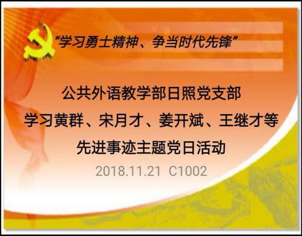 2018年11月21日下午3点,优德体育网站丨中国有限公司官网日照党支部在C1002举行“学习勇士精神、争当时代先锋”——学习黄群、宋月才、姜开斌、王继才等先进事迹主题党日活动。会议由支部书记杜庆凤主持,全体党员以及党员发展对象参加。