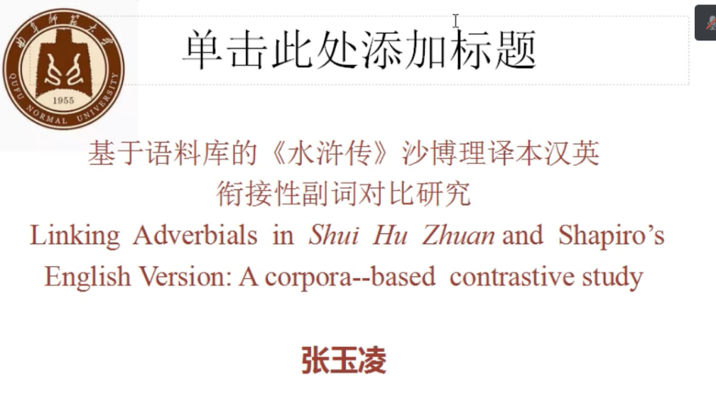 张玉凌老师用语料库的方法对《水浒传》沙博理译本中的衔接性副词进行了汉英对比研究,通过对原文与译文、以及译文与英语原创文学中的衔接性副词进行分类量化对比,发现沙译本主要使用逻辑显化、使用waswhen等表述顺序、译为靠语序连接的意合句、译为对应副词、省略不译等方法消解衔接性副词,并总结了沙译本的特点,认为沙博理翻译的特别之处,既非亦步亦趋追随原文,也非任意“意译”,而是最大化表现汉语原文的语言特点。