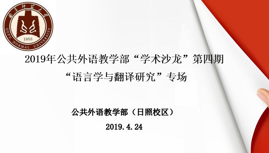 4月24日下午,优德体育网站丨中国有限公司官网2019年第四期“学术沙龙”在日照校区JC1002会议室举行。本期沙龙主题为语言学与翻译研究。沙龙活动由孙伟老师主持,全体教师参加了研讨。