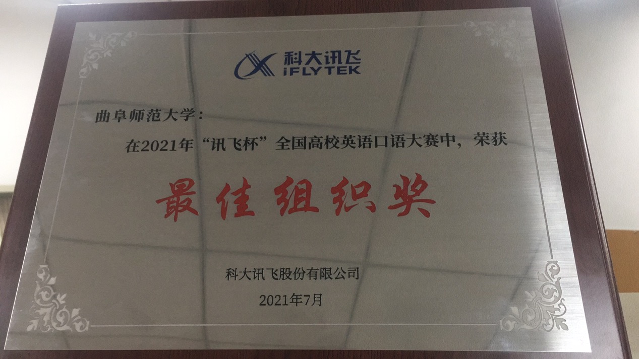 我部荣获2021年“讯飞杯”全国高校英语口语大赛“最佳组织奖”称号