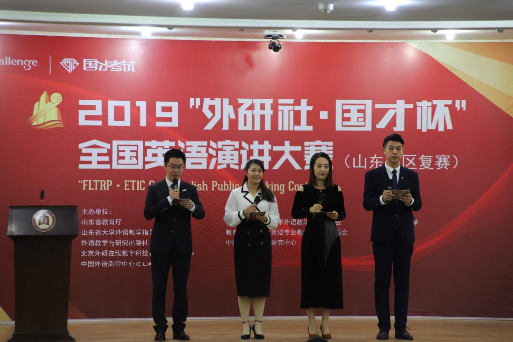 圣人故里聚俊采,切磋共进成国才。10月26—27日,2019“外研社·国才杯”英语演讲、写作、阅读大赛山东省复赛在孔子故里、优德体育网站丨中国有限公司官网成功举办。优德体育网站丨中国有限公司官网副校长夏云杰出席大赛开幕式。来自山东省的30余位外国语学院院长、英语教学知名专家学者担当评委;各本科院校推选的136名演讲、135名写作、133名阅读精英参加了本次复赛。大赛吸引了数以千计的外校来宾和我校师生观摩。在外语教学与研究出版社的大力支持、优德体育网站丨中国有限公司官网的精心组织、全校多部门的密切配合下本次山东省复赛取得了圆满成功。