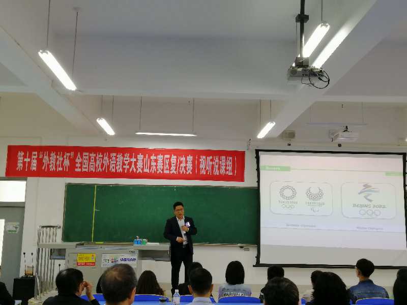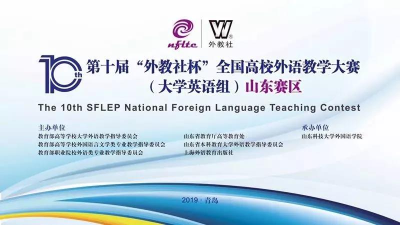 第十届“外教社杯”全国高校外语教学大赛(大学英语组)山东赛区复/决赛于2019518日至19日在山东科技大学成功举行。本次比赛由山东省教育厅高等教育处、山东省本科教育大学外语教学指导委员会和上海外语教育出版社联合主办,山东科技大学承办。比赛分为综合课组、视听说课组和微课组三个组别,来自省内53所高校的85位选手和41个代表队报名参赛。我部推送马艳红参加综合课组、李文彬参加(视)听说组、以及王梅、尹川、朱晓蒙、秦兆荣、蒋珊珊为小组参加微课组比赛。经过初赛、复赛、决赛等比赛环节的激烈角逐,我部推送老师分别荣获综合课组三等奖,(视)听说组三等奖、微课组二等奖的优异成绩。