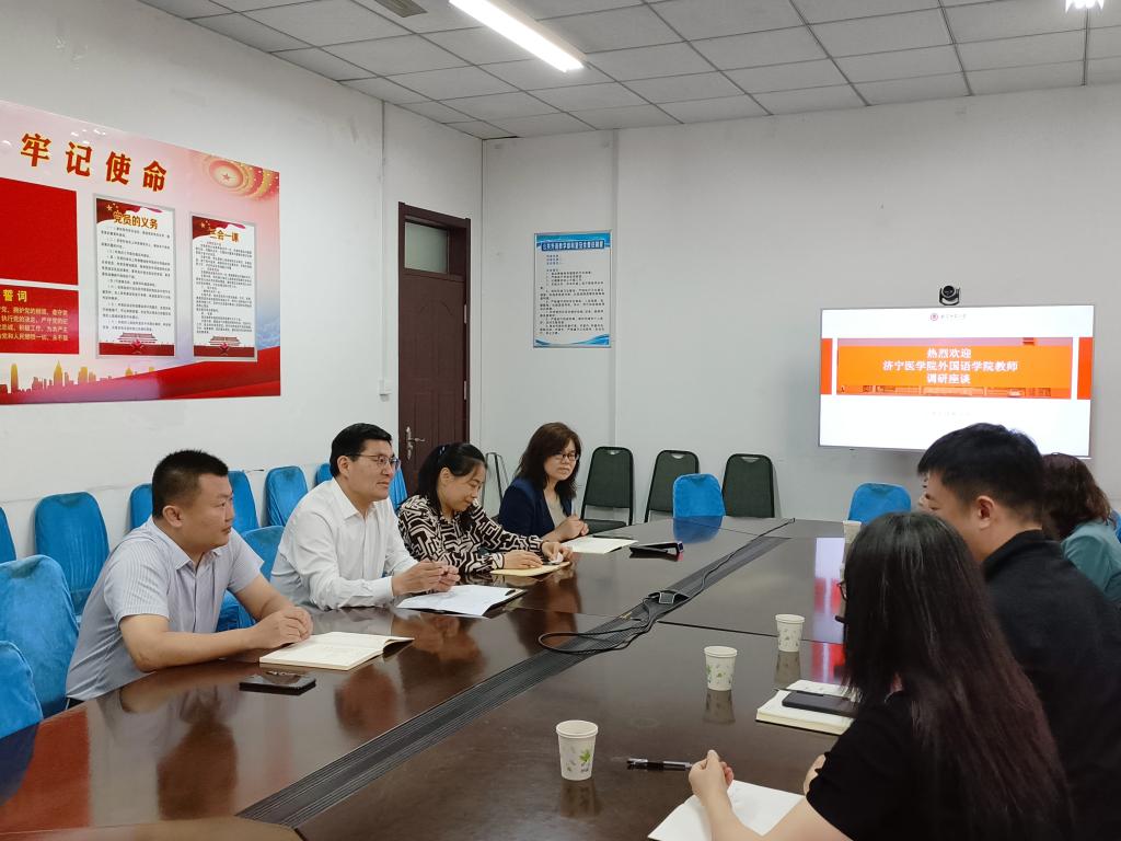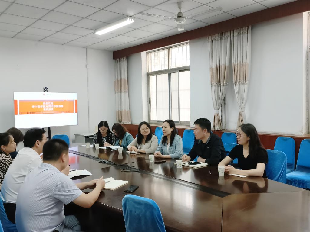 6月1日,济宁医学院外国语学院院长朱敏教授一行来我部考察交流。陪同考察的有学院副书记史飞、副院长褚宏蕊,以及综合科、教研室相关负责人张洁、崔运君、司梦老师。优德体育网站丨中国有限公司官网优德体育网站丨中国有限公司官网主任王福祥、副主任王显明亲切接待了来访客人。教研室主任杜明真、仲蕾一同参加了交流座谈会。