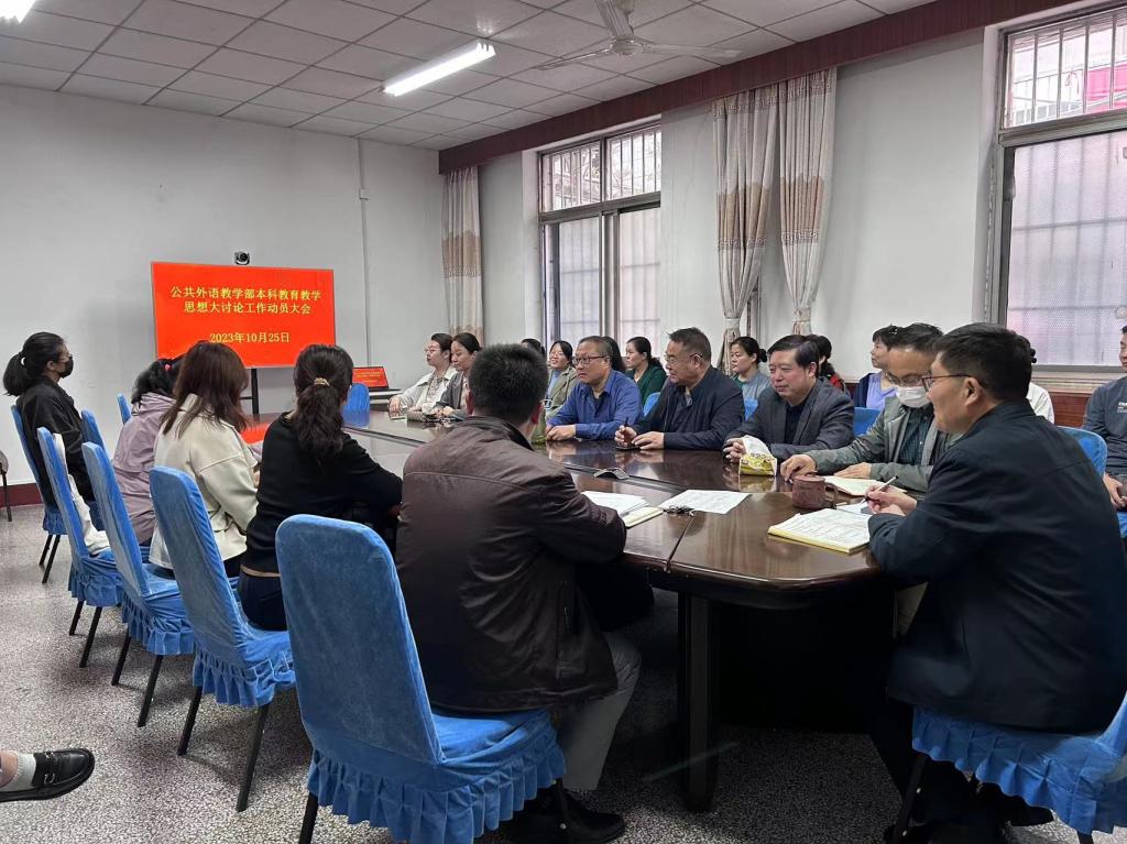 为深入贯彻党的二十大精神、全国教育大会精神、习近平总书记在中共中央政治局第五次集体学习时的重要讲话精神,全面落实中共中央国务院《深化新时代教育评价改革总体方案》和教育部《关于深化本科教育教学改革全面提高人才培养质量的意见》等文件要求,落实立德树人根本任务,推动深化本科教育教学改革,全面提升本科人才培养质量,高质量完成本科教育教学审核评估,10月25日,优德体育网站丨中国有限公司官网组织开展2023年本科教育教学思想大讨论动员会。领导班子成员优德体育网站丨中国有限公司官网主任王福祥;副主任孙伟、代尊峰、王显明;以及全体教师参加会议。